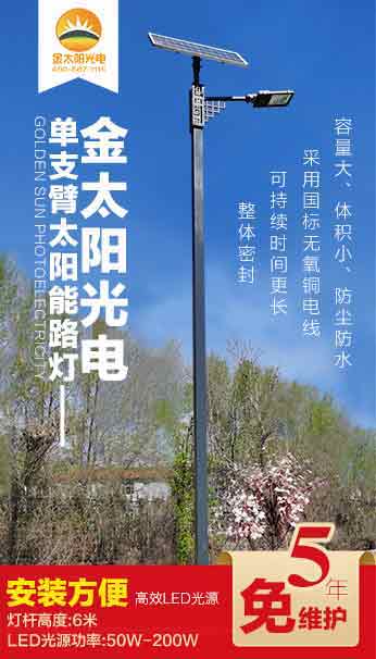 黑龍江金太陽光電自主研發設計的新款太陽能路燈上市,歡迎新老客戶前來淺談業務。